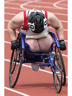 Equipment: Manual wheelchairs only for track events. May be specialized racing chairs or court chairs. All participants must wear a protective helmet. All participants must wear protective gear as prescribed by their physician. Shoes are not required. A throwing chair, maximum of 75 cm high, is allowed for shot put competition. Both boys and girls will throw the 4k shot.