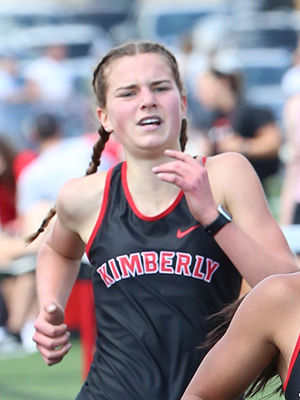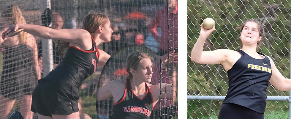 Kimberly Head Coach Greg Kroncke and his staff hosted the annual Gil Frank/Papermaker Invitational at Papermaker Stadium. The meet is named after long time teacher, coach, and athletic director at Kimberly High School Gilbert E. Frank. Fox Valley Lutheran, Freedom, Kaukauna, Little Chute, Notre Dame De La Baie Academy, West De Pere, Xavier along with host Kimberly competed on a very hot day in Kimberly. Freedom edged out host Kimberly 157 to 152 for the team title. Six event records were broken in the meet: Grace Hambel [Freedom, 400], Anna Fauske [Kaukauna, 1600], Kaukauna's 4x8 relay team, Madeline Zirbel [West De Pere, HJ], Eliza Aitken [West De Pere, PV], and thrower Kayla Behnke [Kimberly, Discus]. In the photos above provided by each team from previous meets are Linnea Willer [L] and Kayla Behnke [R]. |