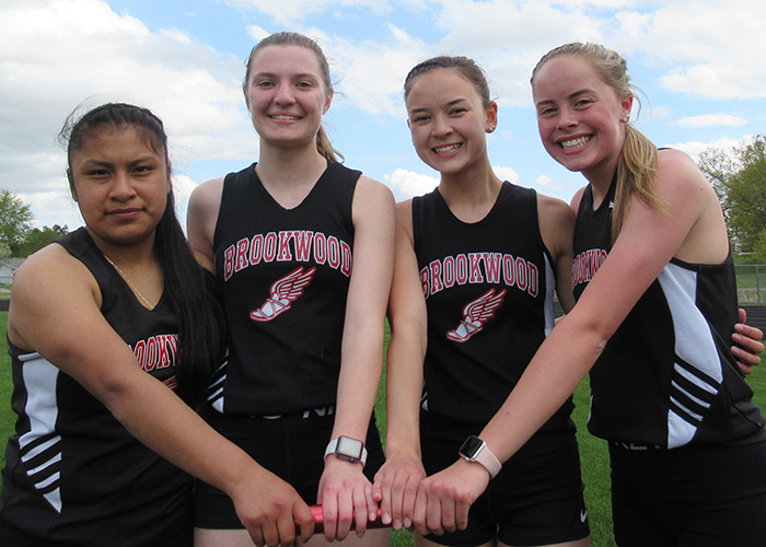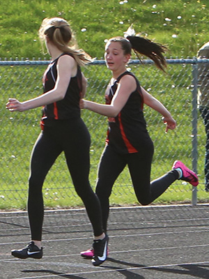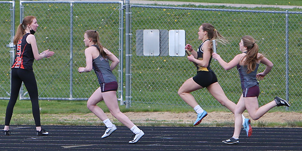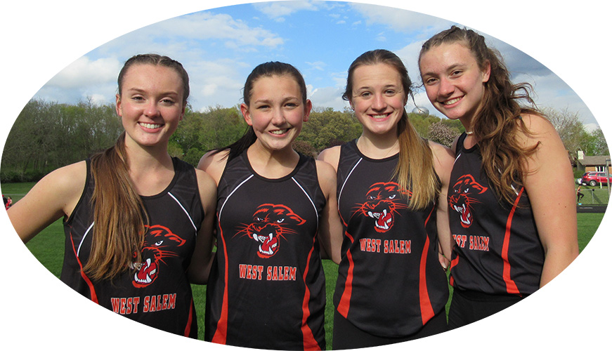 | West Salem won the 4x200m relay in 2:02.41 Runners L-R: Emma Clements, Machaela Antony, Kyla Mooney, and anchor Genevieve Merkel-Sprain. |