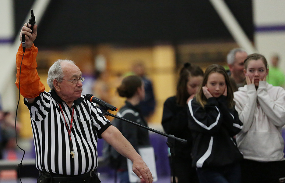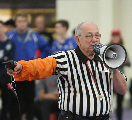 | Track official Robert Kern at the 2017 Nelson Daniels Large School Meet at UW-Whitewater |