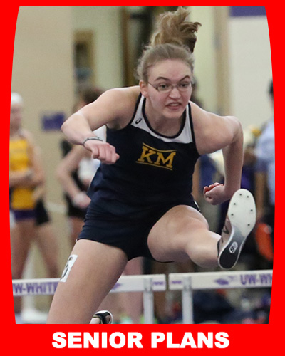 2018 Classic 8 Conference Meet: Champion in the 100m HH, 3rd in the 300m LH, and anchor of the 5th place 4x200m. 2020 Classic 8 Conference Meet: Season in Wisconsin canceled. 2020 WIAA State Meet: State Meet canceled. |