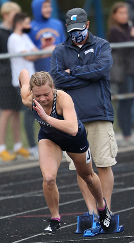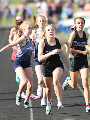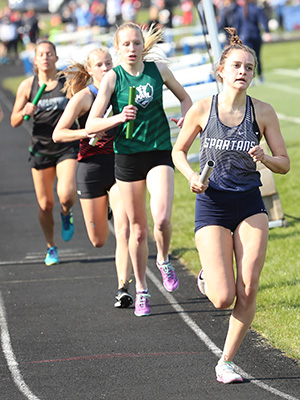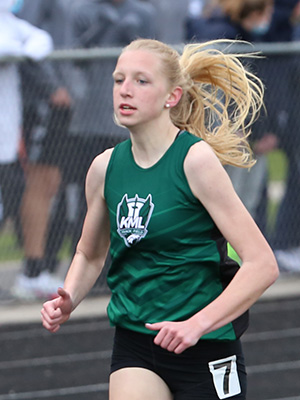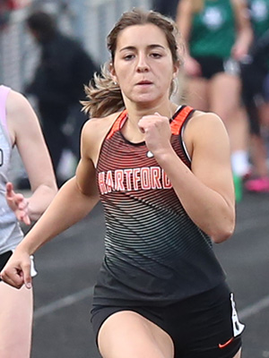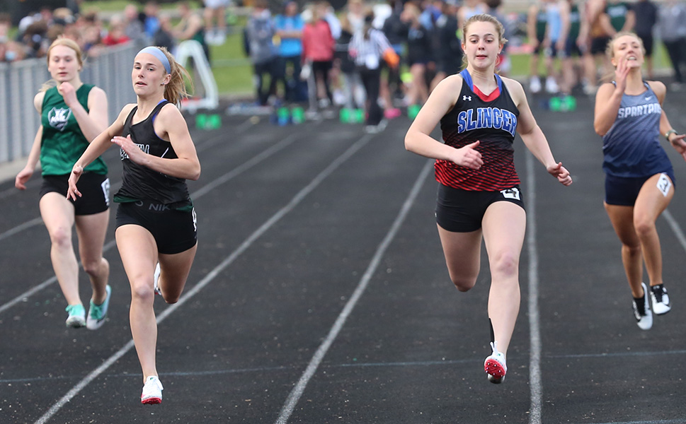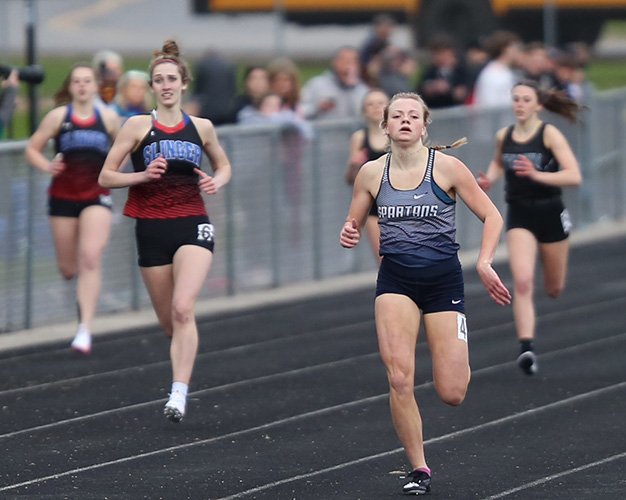 | Ashlyn Uebersetzig from the Spartans of West Bend West won the 400m dash in 1:02.77 | ||