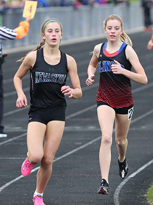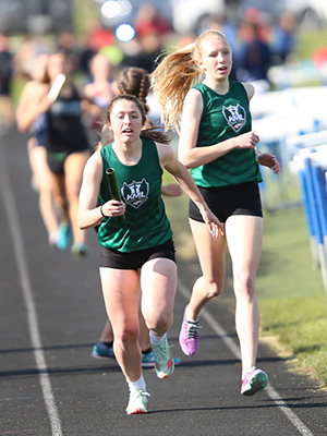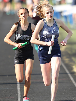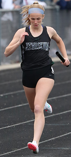 | Left: Leg 2 and 3 runners. Right: Kewaskum anchor Natalie Newman. | ||