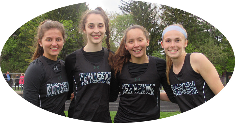 | Kewaskum won the 4x2 with a time of 1:49.64 Team members L-R: Brenna Meidl, Madi Dogs, Julia Steger, and anchor Natalie Newman. |