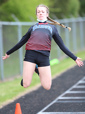 Head Coach Jeremy King, his staff, and the Germantown team hosted the annual Washington County Meet. D1 Germantown, Hartford Union, Slinger, West Bend East, West Bend West, D2 schools Kettle Moraine Lutheran, Kewaskum, and D3 school Living Word Lutheran competed in their first meets since the 2019 season. West Bend West [124.5] edged Germantown [120] and Hartford Union [117.5] for the 2019 Washington County Meet title. The 2021 Meet was won by Slinger which scored 182 points outdistancing second place West Bend West with 112 points. The above photo shows the close finish in the 100m HH event which added to the excitement of finally having a meet after over a year of no meets. Hartford Union's Sierra Thuecks edged Slinger's Paige Pfeifer with Living Word Lutheran's Abby Knueppel coming in third. |