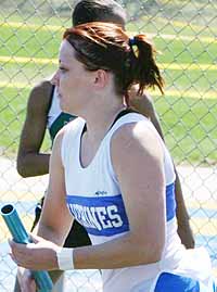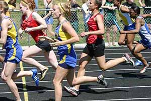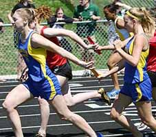 Below: The Sheboygan North 4x1 relay team executes their handoff in the last exchage zone.
