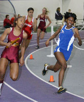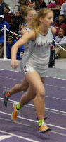 Above Center: Anchor Brittany Glassburn of Middleton is shoulder to shoulder with Milwaukee Rufus King anchor Tanaiya Fisher. King finished finished in second in the 4x4 and moved to second on the Honor Roll list with a time of 4:09.56.