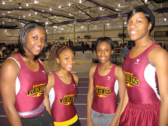 The Milwaukee Vincent 4x2 relay team broke the W/TFA record set by Racine Horlick [ 1:46.4, 1984] by posting a 1:46.10. Team members [Above left L-R]: Ashanti Benson, Samara White, Kiauna Pace and anchor Kennaye Lewis.