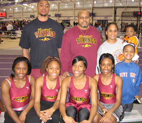 Above right: Team members are pictured with Coach Wright [left] and Samara White's family [Vincent girls track and field coach Les White, mother and brothers].