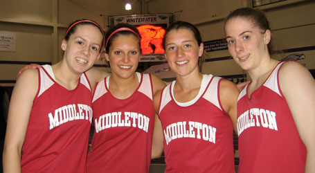 Below: The Middleton 4x4 relay team [L-R] Brittany Glassburn, Katie Gaab, Eileen Walz and Tessa Pulvermacher.