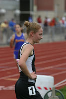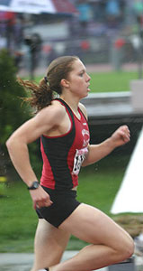 Right: New D2 1600m record holder Ashley Beutler a junior from Belleville-New Glarus who broke Slinger's Cathy Branta's 1981 1600m record of 4:51.86 by running a blistering 4:48.37. |
