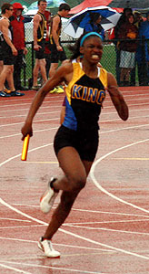 Left: Chanel Franklin another Rufus King senior who anchored the victorius 4x2 relay team on Saturday. Franklin also was a member of the record setting 4x1 relay team.