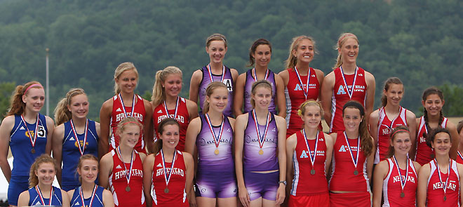 Platteville won the D2 4x8 by posting a 9:32.49. Green Bay Notre Dame was second [9:37.83] with Freedom finishing third in (9:39.31].