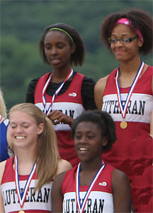 Milwaukee Lutheran 4x1 team members [on the right, clockwise from top left] were: Chelsea Jordan, Raynna Thompson, Charese Hampton, and Alexandria Schad.