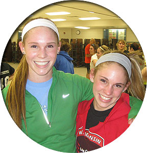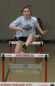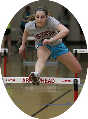 Above L-R: Liz Duchow and Heather Bong - 4x1 and 4x2 relay members are shown at the 2009 Myrhum Invitational hosted by Arrowhead. Now the teammates are in their final season of track and field at Arrowhead. Right: Liz Duchow at the 2010 Catholic Memorial Crusader Invite. Duchow's sister Katie is on the UW-Madison Track and Field team while another sister Sara ran for UW-La Crosse. Sara was a member of the La Crosse Championship WIAC 4x4 relay teams in 2007 and 2008.