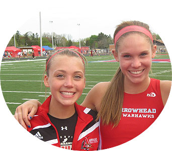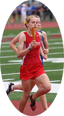 Above left: Senior Andie Zeman finished 6th in the D1 800m race at the 2010 State Meet. above right: Senior's Amanda Shober and anchor Heather Bong were on the Arrowhead 4x1 [4th place] and 4x2 [3rd place] relay teams at La Crosse