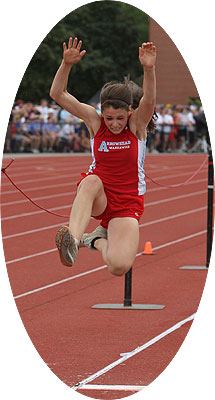 Above left: One of the new kids on the block is ninth grader Jackie Dubnicka. Dubnicka helped the Warhawks to a third place D1 finish in the 2010 State Cross Country Meet by finishing fourth in the D1 individual competition. Above center: Jenna Jubeck a junior finished 7th in the D1 LJ at the 2010 State Meet while teammate Cami Gilson [right] also a junior vaulted 11' 00 to win the Silver Medal in the D1 pole vault at La Crosse.