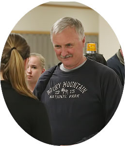 James Ziech [above] has coached at Arrowhead for 12 years. He leads the warmups and is the hurdles coach.