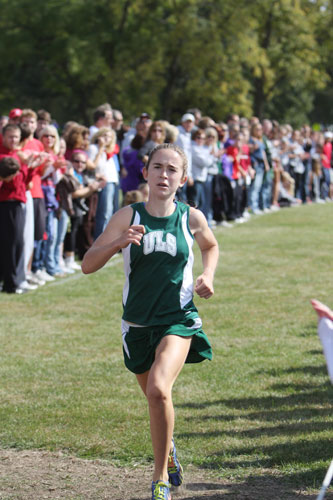 Above right: The Seidel sisters prepare for the countdown and the start. Molly ran a 13.34 earlier this season at the Arrowhead Invitational. That was the fastest time recorded in Wisconsin State Cross Country history. However under ideal weather conditions she blazed to a new record at the Midwest Cross Country Invite.