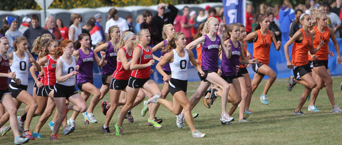 1000 girls ran on Saturday at the Midwest Cross Country Invite. In addition to teams from Wisconsin, teams from Iowa, Illinois, and Houston, TX participated in the 74th annual Midwest Meet. |