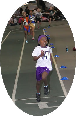 The old record in the 800m run for the primary level was 3:10.50. The athlete below from Kansas posted a 2:57+ to set a new National Record for the AAU Northern Indoor Meet.