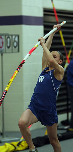 Above: Wisconsin Lutheran vaulter Taylor Corkum. Left: Draxler on an approach. Below Ashwaubenon vaulter Alex Flucke. Flucke placed second with a vault of 11' 00.