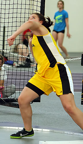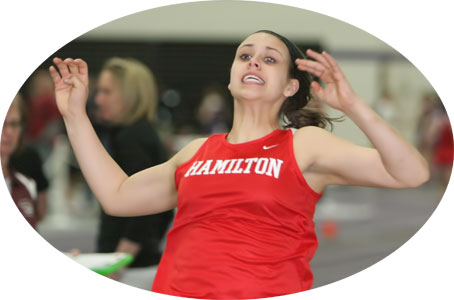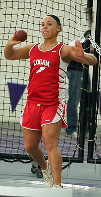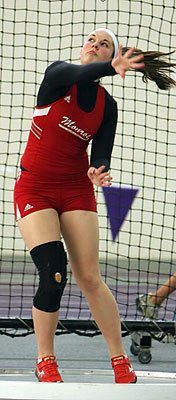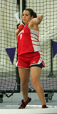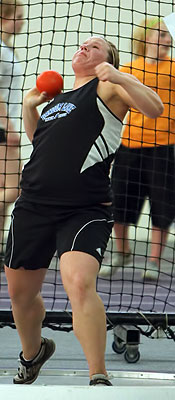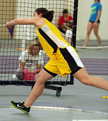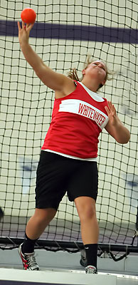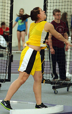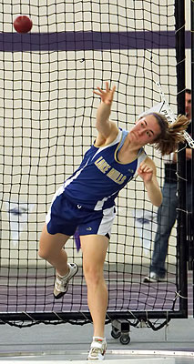 One of the two new athletes to make an impression in the field events was Kennedy Blahnik [left and above] from D3 Algoma. Blahnik's throw of 43' 1.50 took first place at the 2011 W/TF Meet.
