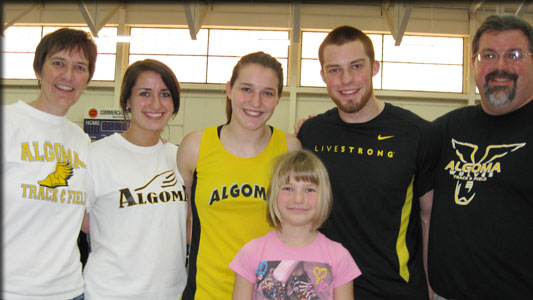 Above L-R: Kennedy and Zach's mother Terri, sister Alex, Kennedy and Zach, and their father Dean who is also the assistant [throws] coach at Algoma. In front is their sister Bobbi .