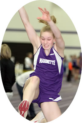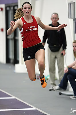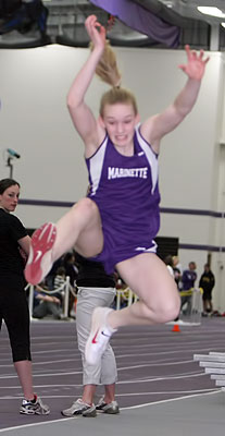 Below right: Wisconsin Lutheran jumper Sara Hirschmann was 6th.