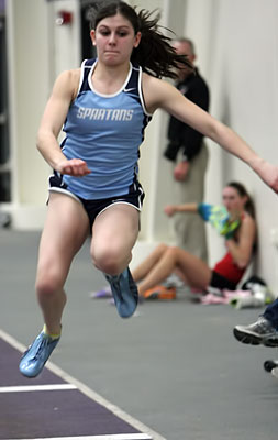 Maria De Valk [Kimberly] jumped 16' 10.50 to take 3rd. Stoughton's Brianna Bower was 4th [16' 10.00].