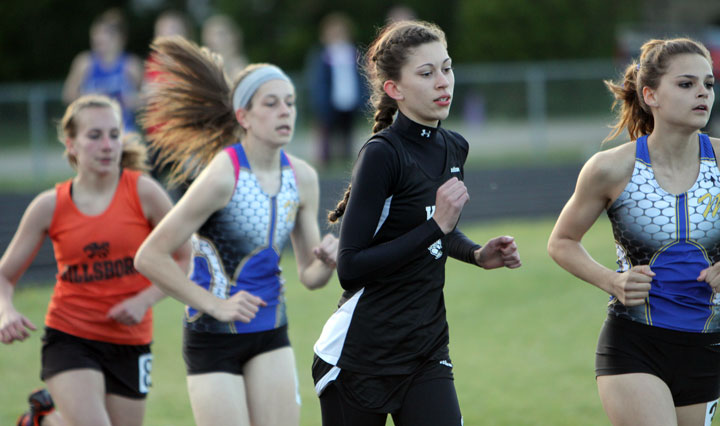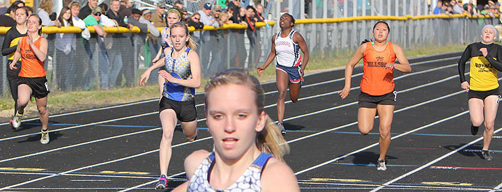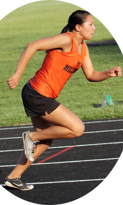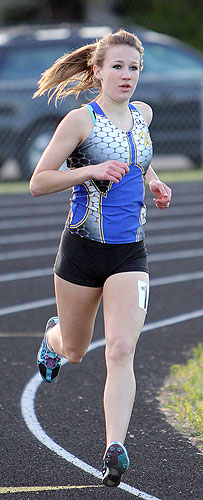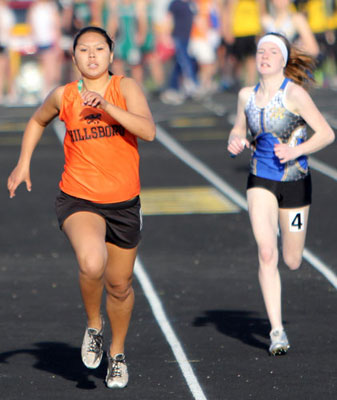 Below: Hillsboro dash athlete Savannah Noth in the 400m long dash.