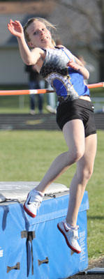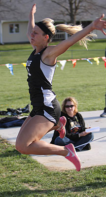 Below: Taylor Sherry of Kickapoo-La Farge in the LJ. she won with a jump of 15' 04.