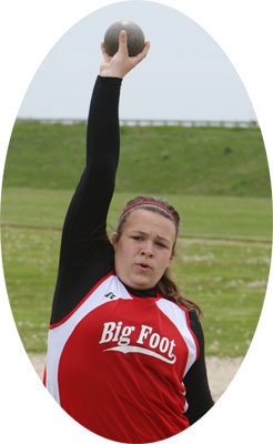 Alyssa Lueck a senior from D2 Big Foot and a North Dakota University recruit placed 7th in the D2 Shot Put at 2011 State Meet. At the Nelson Daniels Small School Meet, Friday, March 16, she won the event with a distance of 39' 08.75.