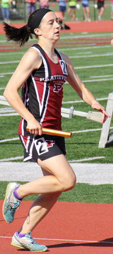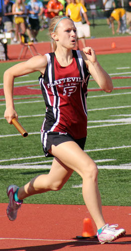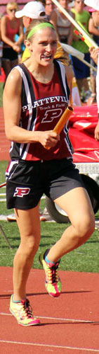 Left: Platteville won the D2 4x4 race. The returning runners [L-R] are Allie Serres [10], Julia Lawinger [12], and anchor Laura Donovan [12].