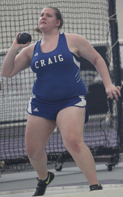 Above left: Beloit Memorial thrower Lacey Cousins. Above right: Wauwatosa West throw athlete Beth Garncarcz.