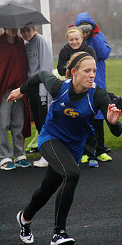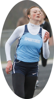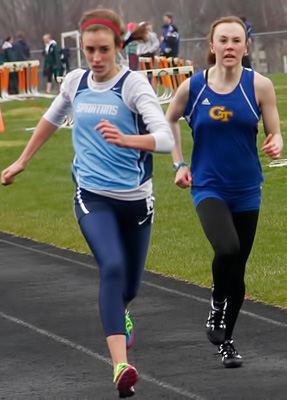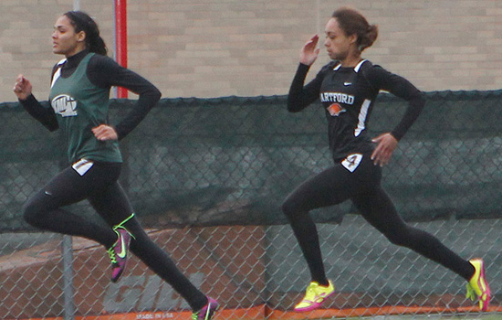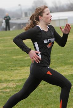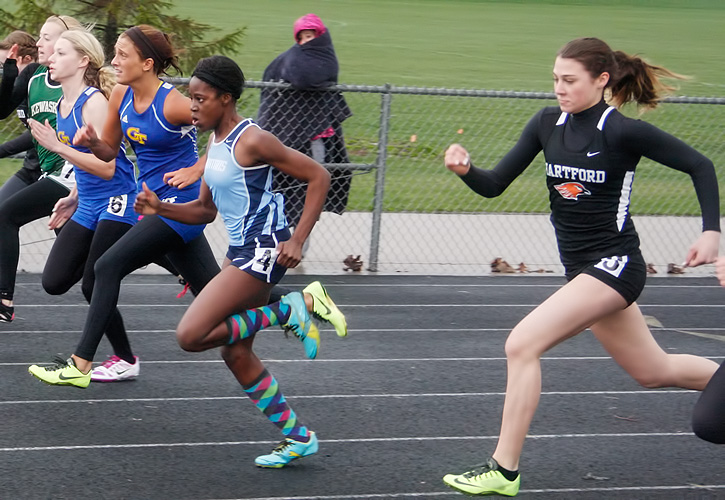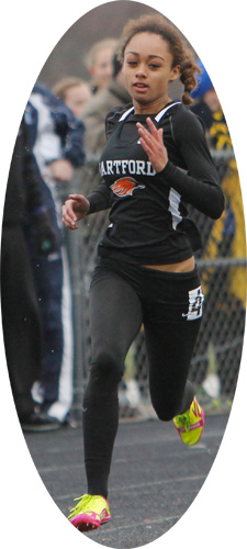 Right: 400m long dash winner Ashley Melvin a sophomore from Hartford Union [1:00.56].