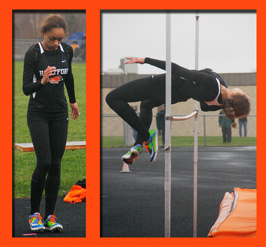 Right: Ashley Melvin from Hartford Union was the HJ winner with a height of 5' 04.