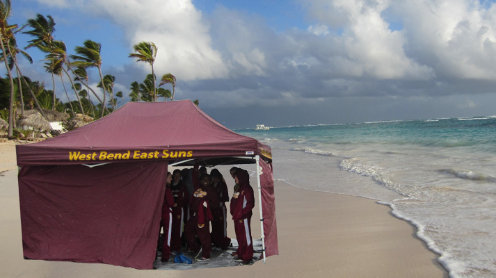 The West Bend East 'Suns' like the other teams made good use of their team tents. Athletes were prepared for the weather and all events proceeded except the pole vault which was cancelled. The WB East team picked the best spot for their team tent.