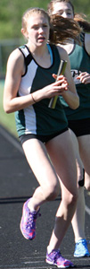 Above: 800m run Champion Liz Bohn [2:27.05, SMS]. Bohn is shown in the 1600m run.