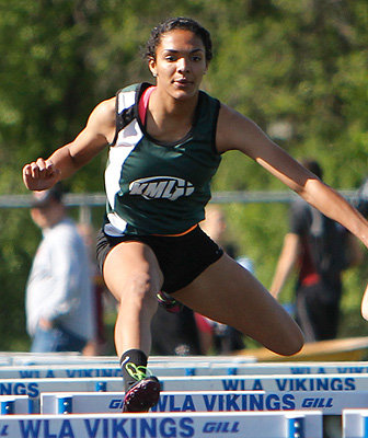 Above center: Sydney Rossow [2nd in 100m HH, KML].