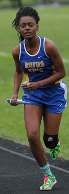 Left: King anchor Aneisha White accelerates on the handoff from teammate Jhane Thornton.