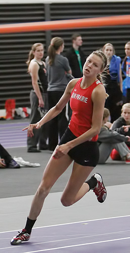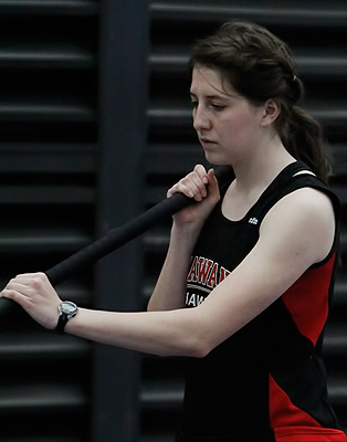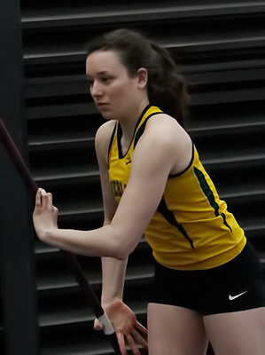Above and right: 2015 W/TFA Indoor PV Champion Kylie Swiekatowski a junior from De Pere vaulted 12' 06..