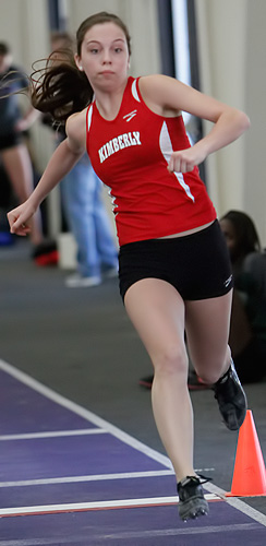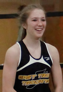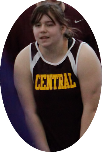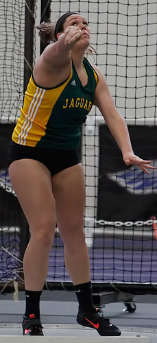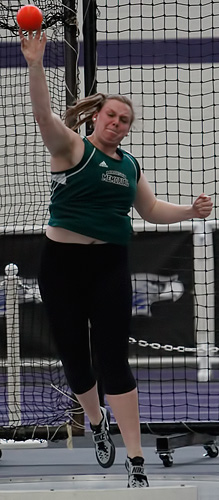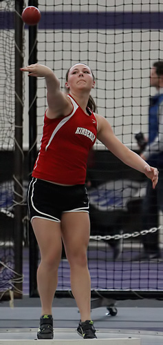 Left: 2015 W/TFA Indoor Champion Erin Dunning a sophomore from Ashwaubenon had a best throw of 42' 07.