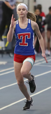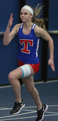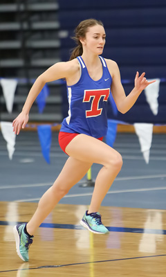 Left: Ninth grader Maddy Troy from Kenosha Tremper won the LJ with a distance of 17' 08. She had a 18' 01.75 jump at the Lake Michigan Invite at the TARQ Center at Carthage College on Friday, March 17.