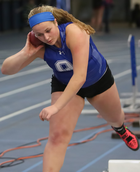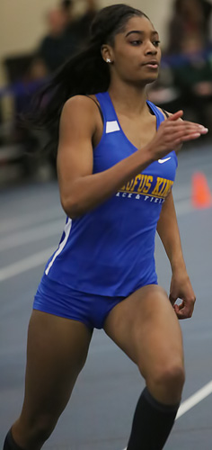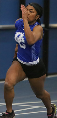 Left: Siarah Jones. Jones is the current leader on the D1 HR list for the 55m HH event.