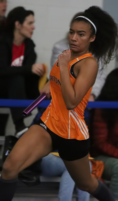 Above left: Lea Finn. Above right: Katie Gard. Below: 4x160m relay runners.