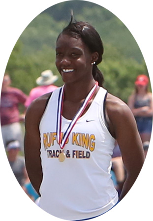 Right: 2017 100m D1 Champion Makayla Jackson a sophomore from Milwaukee Rufus King. Jackson's mother Dana Collins is an assistant coach at Rufus King and was a former State Champion from Milwaukee Marshall.