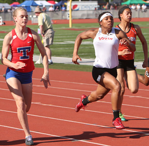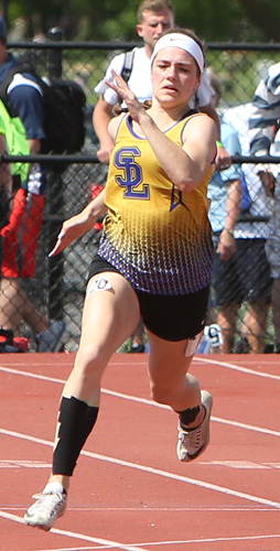 Left: Gold Medal 400m dash winner Julianne Barkholz from Newman Catholic.