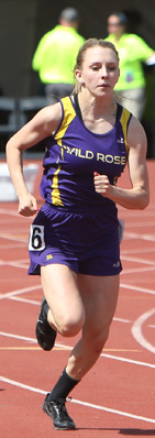 Left: Brooke Jaworski with 50m left in the 200m race.