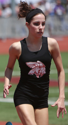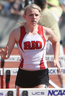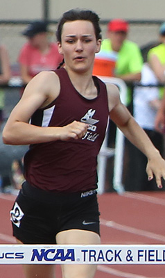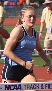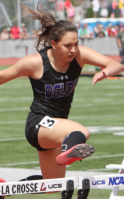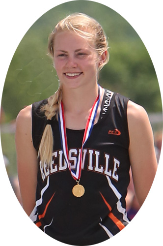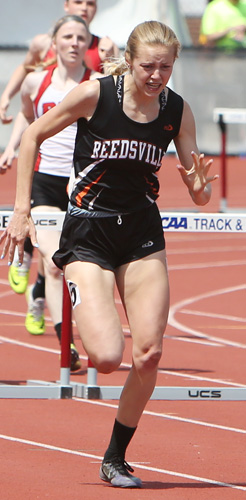 Reedsville senior Faith Lubner [above] finished her high school career with a double win in the hurdle events. She won the 100m HH in 15.58. This marked the third straight year that she won the Gold Medal in the HH event.